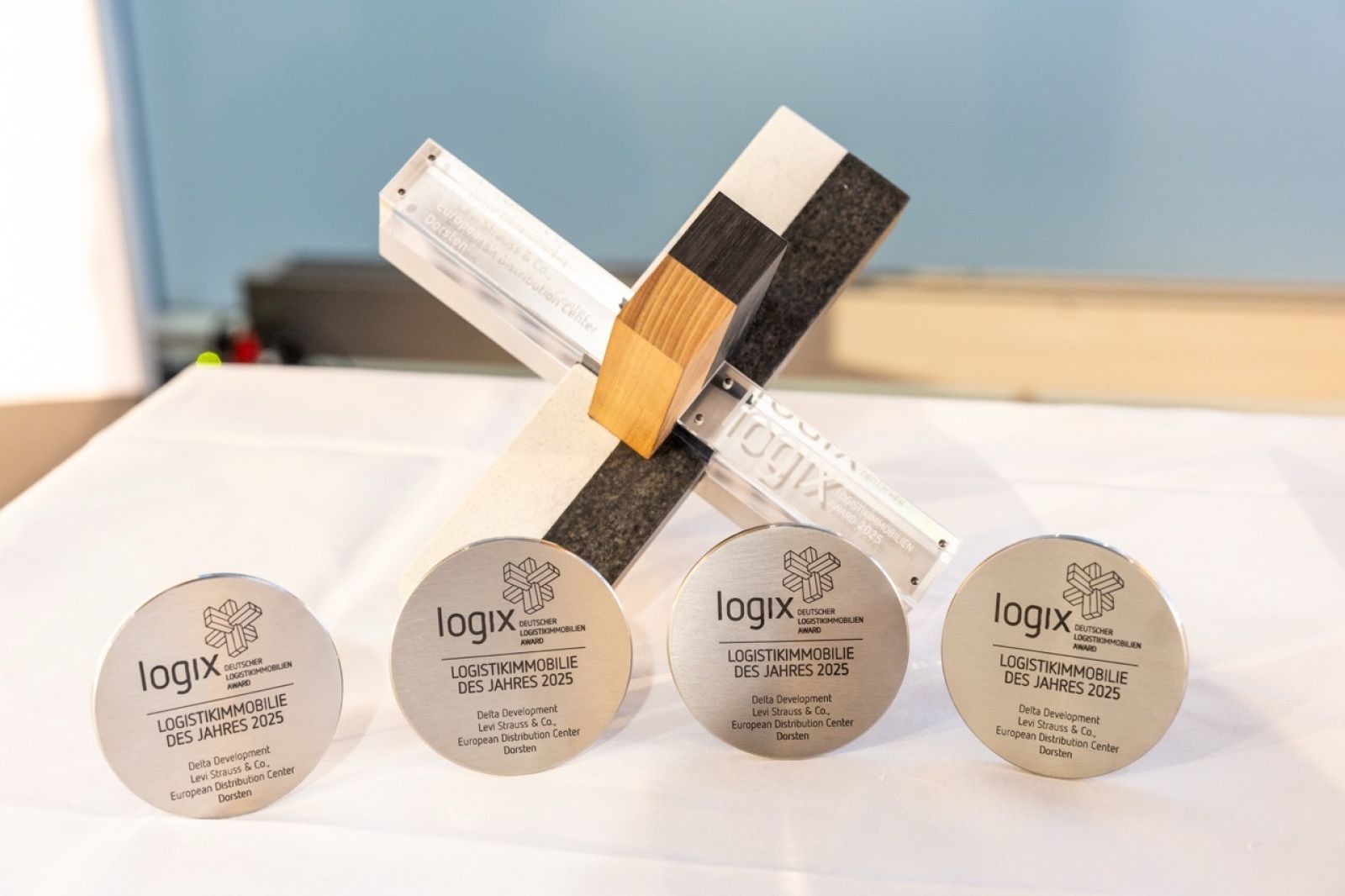 Am 06. Oktober 2025 versammelten sich zum insgesamt siebten Mal rund 130 Gäste zur feierlichen Verleihung des Logix Award am ersten Abend der Expo Real in München. Gewinnerprojekt ist das Levi Strauss & Co. European Distribution Center des Projektentwicklers Delta Development.